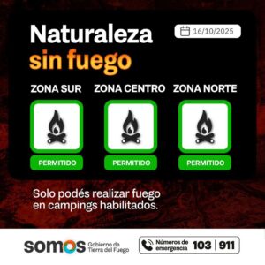 El día de hoy, en las ciudades de Río Grande, Tolhuin y Ushuaia, está permitido hacer fuego, únicamente en campings...