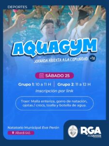 RIO GRANDE : EL MUNICIPIO INVITA A UNA NUEVA JORNADA ABIERTA DE AQUAGYM