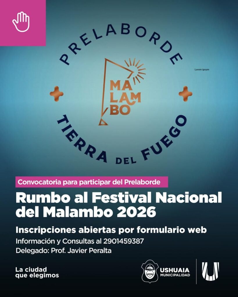 La Secretaría de Cultura y Educación de la Municipalidad de Ushuaia informa a vecinos y vecinas que se encuentran abiertas las inscripciones para el selectivo “Prelaborde Tierra del Fuego”, instancia que conformará a la delegación provincial de cara al Festival Nacional del Malambo en Laborde, Córdoba en enero de 2026.
