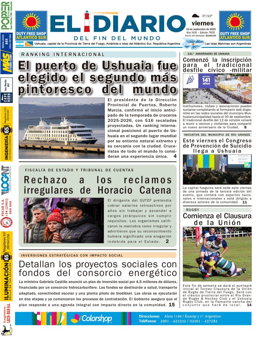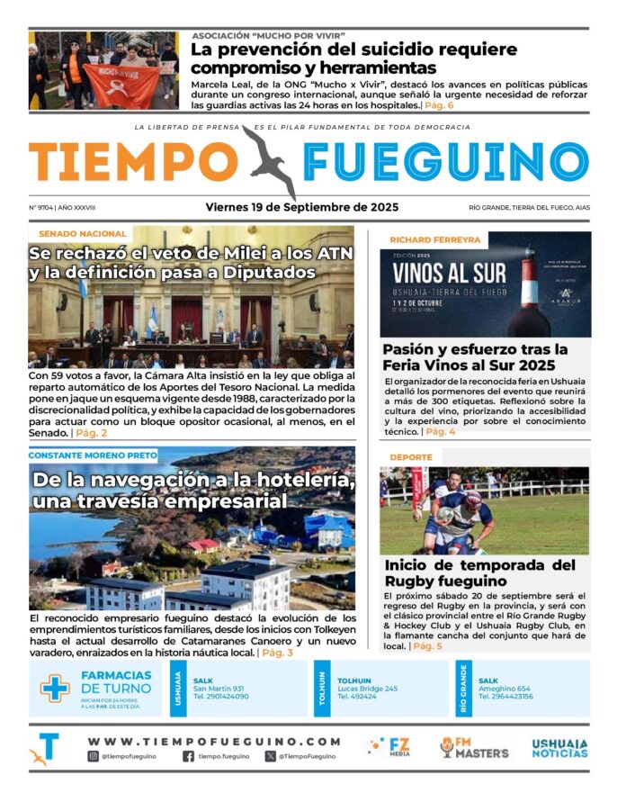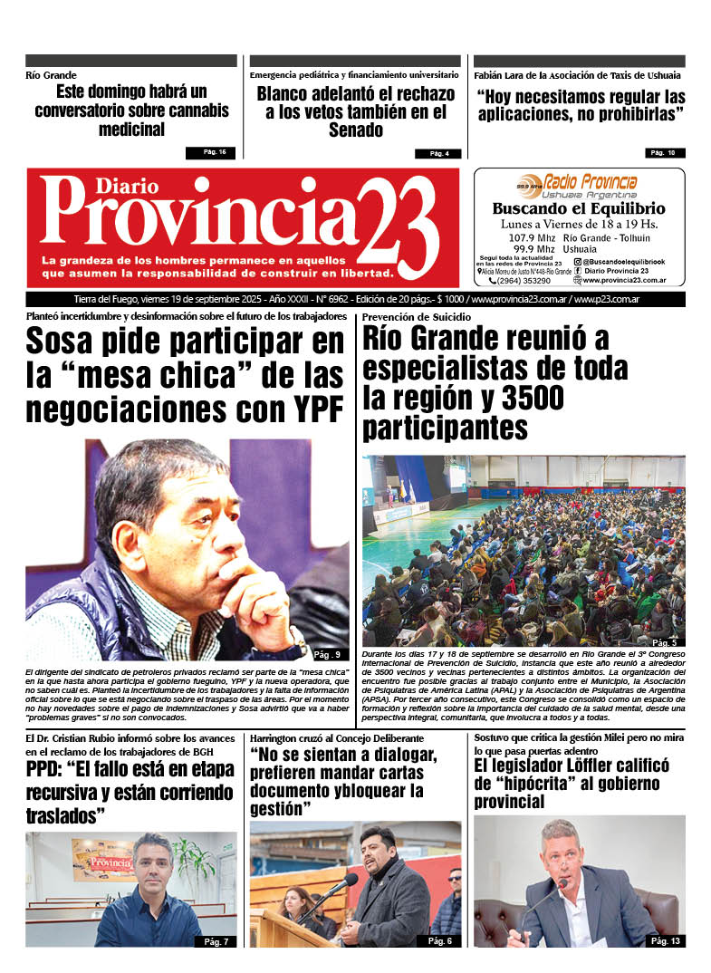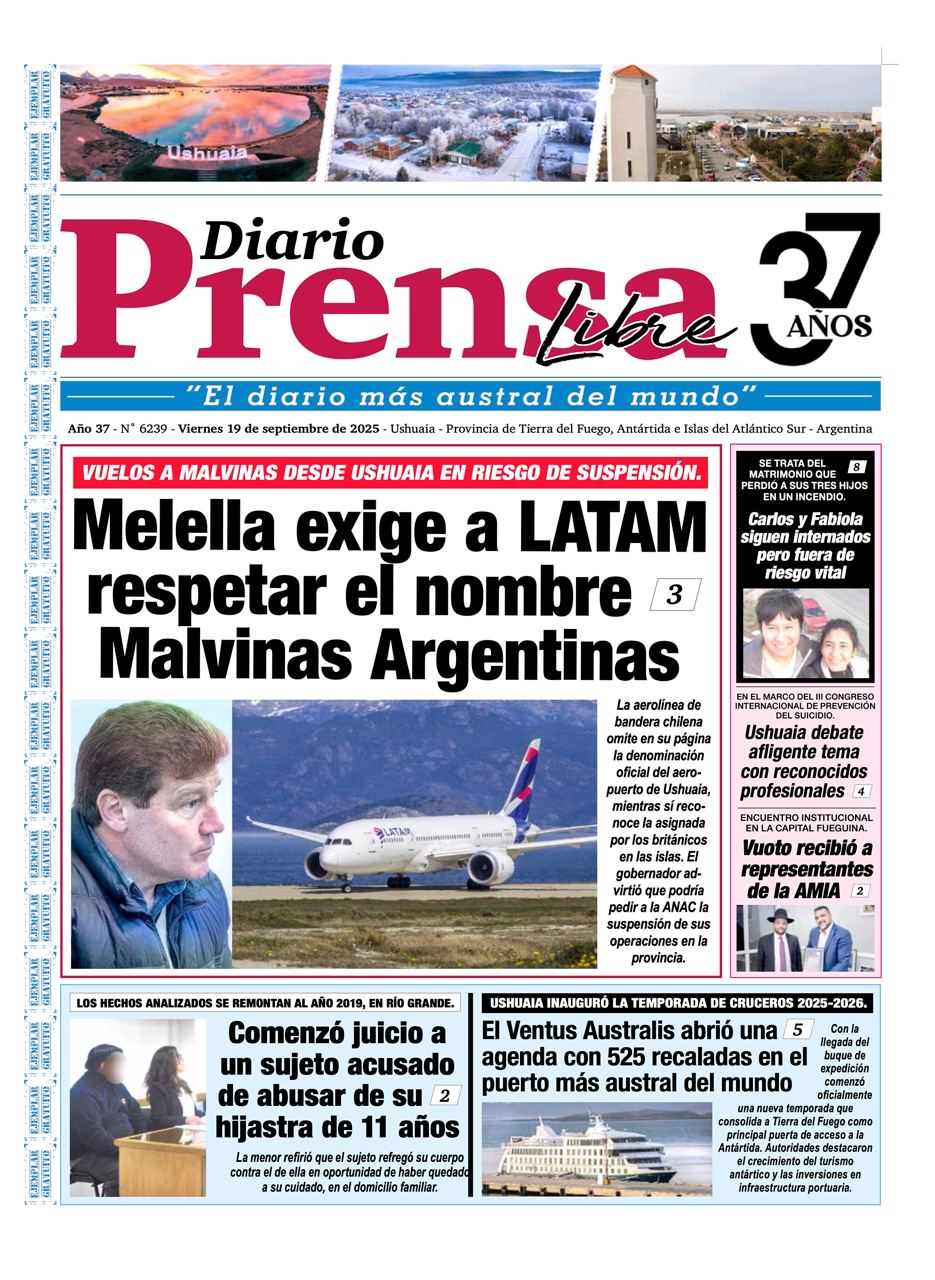 Noticias DIARIOS FUEGUINOS DEL 19/09/2025. septiembre 19, 2025 Continue Reading Previous PARLAMENTO JUVENIL: “ES FUNDAMENTAL QUE LAS JUVENTUDES TENGAN ESTOS ÁMBITOS DONDE SE ESCUCHEN SUS VOCES”Next DIARIOS NACIONALES DEL 19/09/2025.