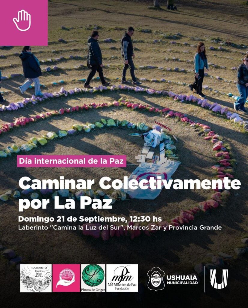 La Secretaría de Cultura y Educación de la Municipalidad de Ushuaia informa a vecinos y vecinas que la propuesta a “Caminar Colectivamente por la Paz”, impulsada en el marco del Día Internacional de la Paz, se reprogramará por condiciones climáticas a este domingo 21 de septiembre a las 12:30 horas, realizándose en el espacio verde ubicado en Marcos Zar y Provincia Grande.