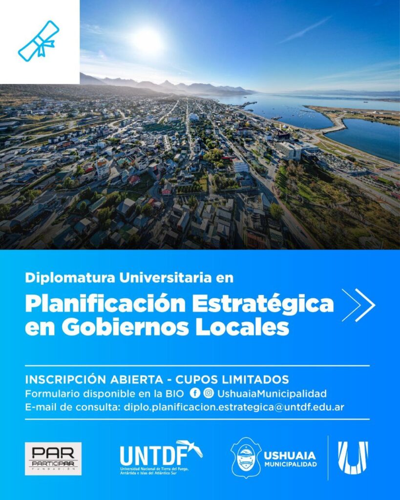 La Municipalidad de Ushuaia, junto a la Universidad Nacional de Tierra del Fuego, Antártida e Islas del Atlántico Sur (UNTDF-AIAS) y la Fundación Participar en Argentina, realizarán el lanzamiento de la Diplomatura Universitaria en Planificación Estratégica en Gobiernos Locales el próximo miércoles 24 de septiembre.