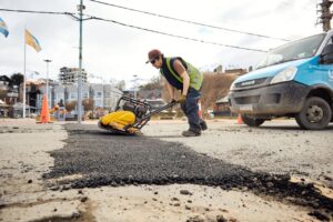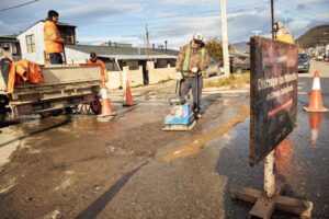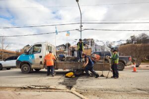 La Municipalidad de Ushuaia avanza con la implementación del plan de bacheo que tiene como eje la reparación de las calles de mayor tránsito vehicular, para luego alcanzar arterias complementarias.