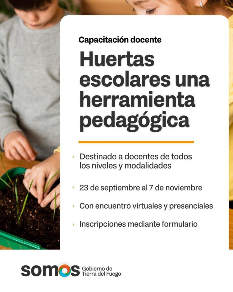 Interesados en conocer más de esta propuesta, pueden hacer sus consultas al email huertas.escolares.capacitacion@tdf.edu.ar