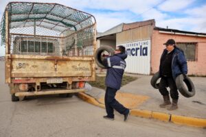El Municipio de Río Grande realiza una recolección diferenciada de cubiertas en desuso en las gomerías de nuestra ciudad en pos de que reciban el tratamiento adecuado conforme a lo establecido por la Resolución N.° 523/2023, dicha tarea es la trituración de las mismas para ser enviadas al continente.