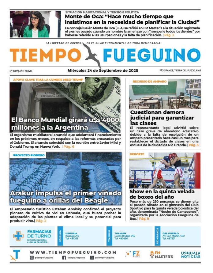 Noticias DIARIOS FUEGUINOS DEL 24/09/2025. septiembre 24, 2025 Continue Reading Previous SE ABREN LAS INSCRIPCIONES CICLO ESCOLAR 2026 PARA NIVEL INICIAL Y PRIMARIANext DIARIOS NACIONALES DEL 24/09/2025.