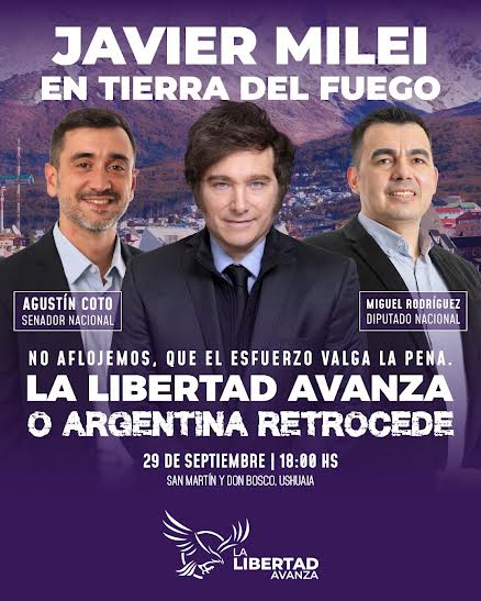 MILEI VISITA TIERRA DEL FUEGO PARA RESPALDAR A LOS CANDIDATOS DE LA LIBERTAD AVANZA