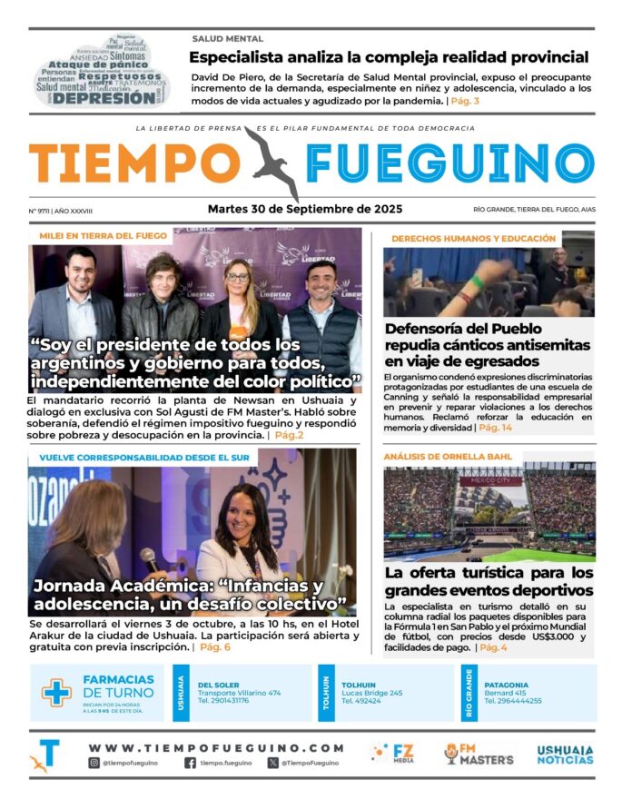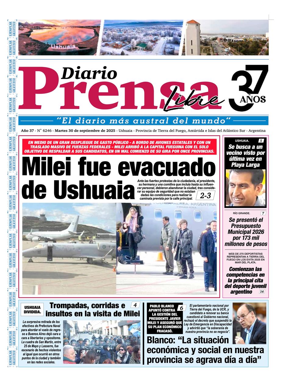 Noticias DIARIOS FUEGUINOS DEL 30/09/2025. septiembre 30, 2025 Continue Reading Previous TIERRA DEL FUEGO AFRONTA LOS JUEGOS NACIONALES EVITA 2025Next DIARIOS NACIONALES DEL 30/09/2025.