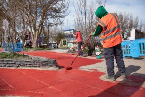 La secretaria de Planificación e Inversión Pública del Municipio, Belén Borgna, detalló que “se está trabajando en recuperación de cordones y en los muros de las plazoletas”, y además “se avanzó con la pintura de veredas y se realizó el mantenimiento de la Plaza Malvinas y del muro plaquetario de la Plaza 25 de Mayo”.