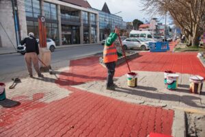 Personal del área de Servicios Públicos de la Municipalidad de Ushuaia continúa con las tareas de embellecimiento y puesta en valor de la zona céntrica, en el marco de los preparativos para un nuevo aniversario de la ciudad y el inicio de la temporada estival.