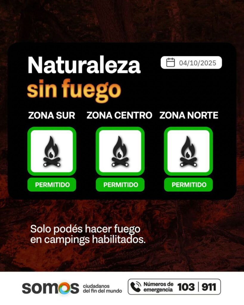El día de hoy, en las ciudades de Río Grande, Tolhuin y Ushuaia, está permitido hacer fuego, únicamente en campings habilitados.