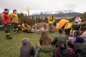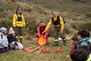 Durante la jornada, los estudiantes recorrieron distintas estaciones educativas donde aprendieron sobre la prevención de incendios forestales a partir de la simulación del uso del fuego en un camping habilitado; el uso responsable de calentadores y anafes a gas; el cálculo del índice de peligrosidad y las herramientas que utilizan los combatientes en el terreno.