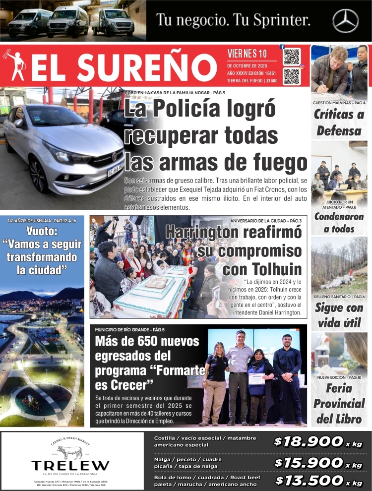 Noticias DIARIOS FUEGUINOS DEL 10/10/2025. octubre 10, 2025 Continue Reading Previous USHUAIA : LA MUNICIPALIDAD OFRECERÁ UN CURSO PARA VECINOS MAYORES SOBRE EL USO DEL CELULAR Y LAS REDES SOCIALESNext DIEARIOS NACIONALES DEL 10/10/2025.