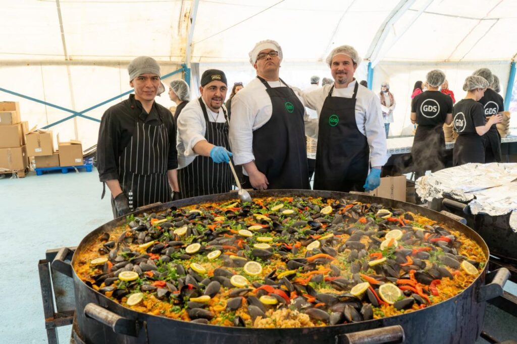 La paella estuvo a cargo de Gastronomía del Sur (GDS), empresa que desplegó un operativo de más de 100 profesionales y montó 15 paelleras —entre ellas, una versión vegetariana— para cocinar y servir las 15 mil porciones gratuitas destinadas a la comunidad. La entrega comenzó a las 14 horas y se extendió durante más de tres horas, en un clima de alegría y celebración compartida.
