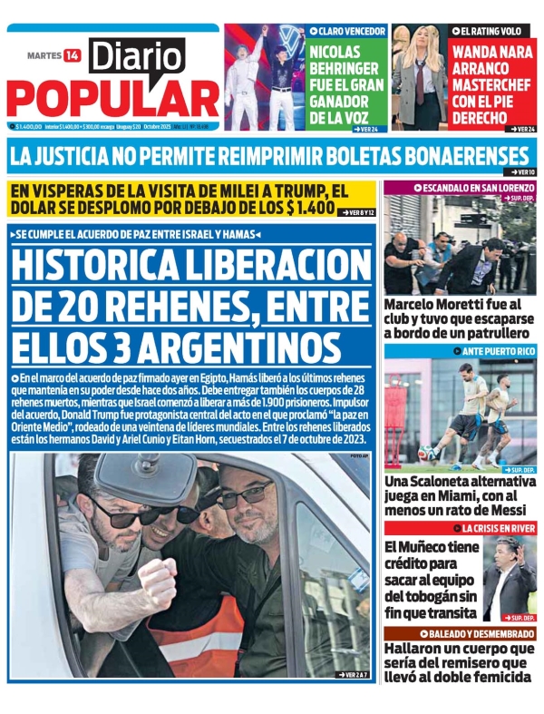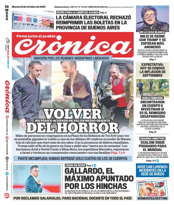 Noticias DIARIOS NACIONALES DEL 14/10/2025. octubre 14, 2025 Continue Reading Previous DIARIOS FUEGUINOS DEL 14/10/2025.Next RIO GRANDE : MUNICIPIO Y UATRE CONSOLIDAN POLÍTICAS DE ACOMPAÑAMIENTO A TRABAJADORES RURALES