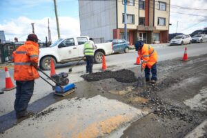 La Municipalidad de Ushuaia, a través de la Secretaría de Inversión y Planificación Pública, da continuidad al plan de bacheo de calles y avenidas que se puso en marcha tiempo atrás con la mejora de las condiciones climáticas y se intensificó con la finalización de la temporada invernal.