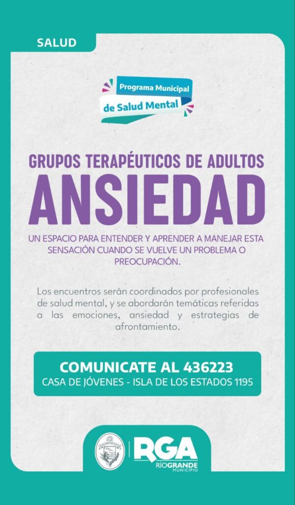 Se trata de una serie de encuentros, coordinados por psicólogos y trabajadores sociales de la Dirección General de Salud Mental y Adicciones del Municipio de Río Grande, donde se tratarán diversas herramientas para la gestión emocional, ansiedad y estrategias de afrontamiento.
