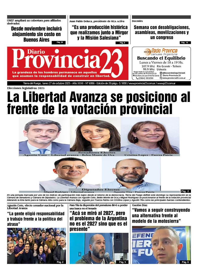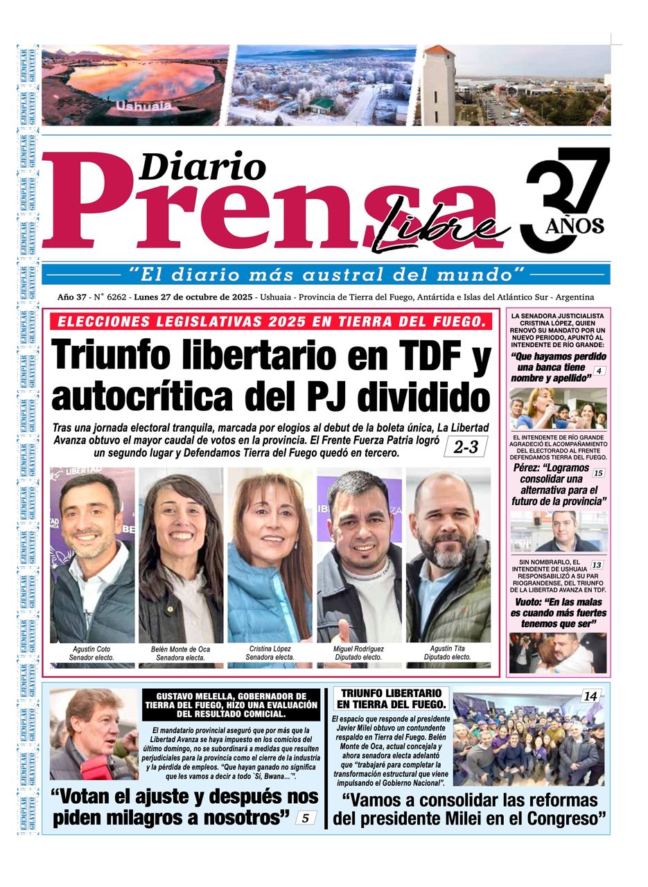Noticias DIARIOS FUEGUINOS DEL 27/10/2025. octubre 27, 2025 Continue Reading Previous RIO GRANDE : HOY ES UN DÍA DE REFLEXIÓN PARA TODOS LOS FUEGUINOS, UN DÍA PARA PENSAR EN EL FUTURO DE LA PROVINCIANext DIARIOS NACIONALES DEL 27/10/2025.