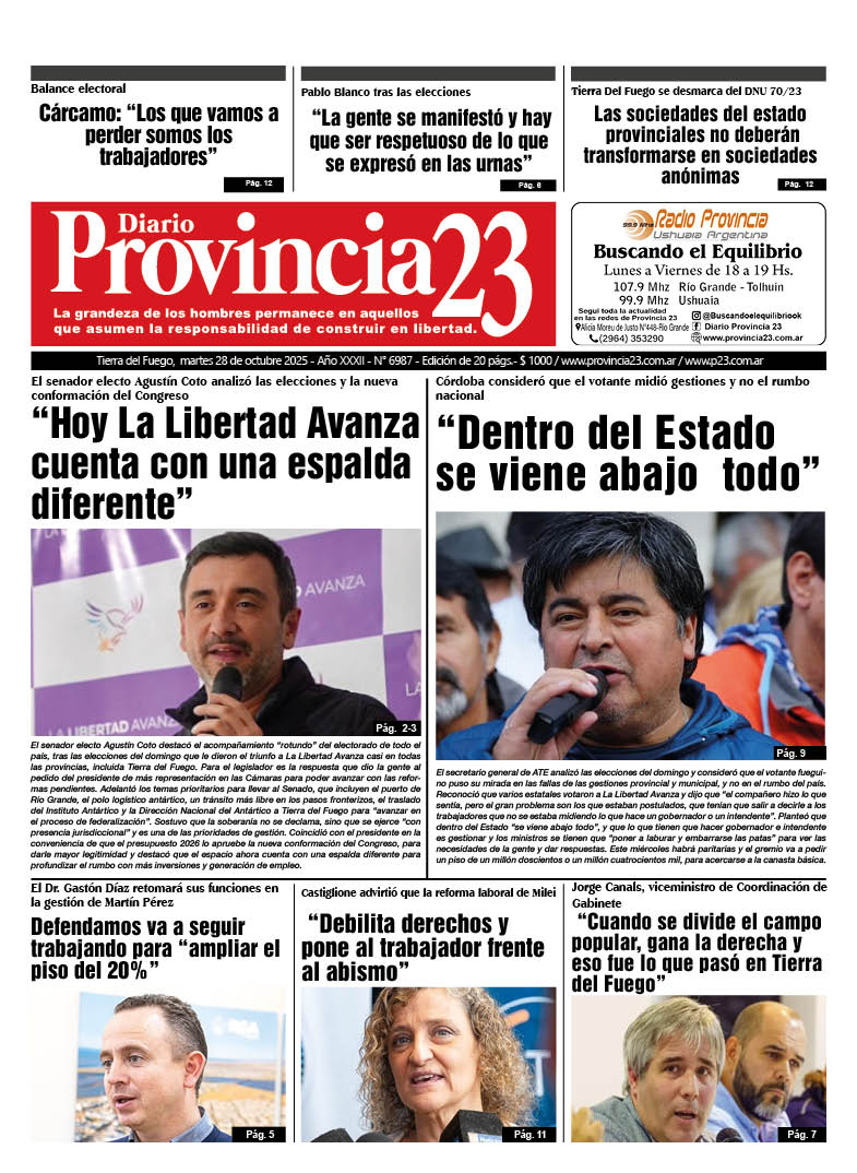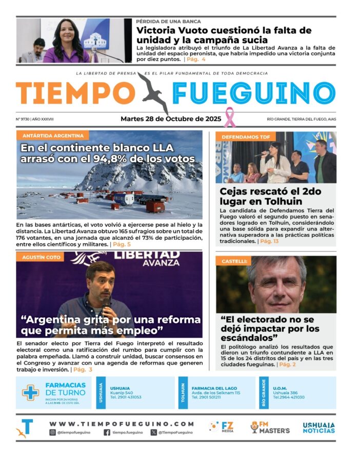 Noticias DIARIOS FUEGUINOS DEL 28/10/2025. octubre 28, 2025 Continue Reading Previous PABLO BLANCO: “Yo ya di todo lo que podía dar. Ahora vienen otras generaciones”,Next DIARIOS NACIONALES DEL 28/10/2025.