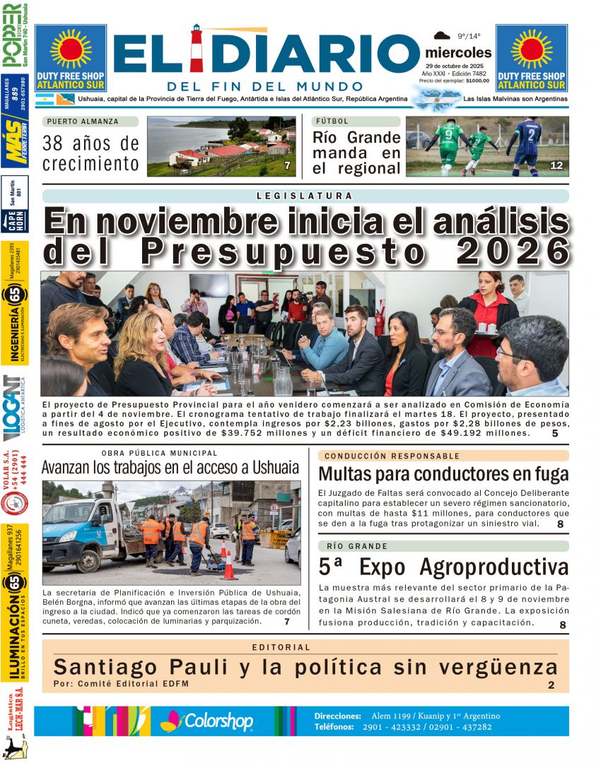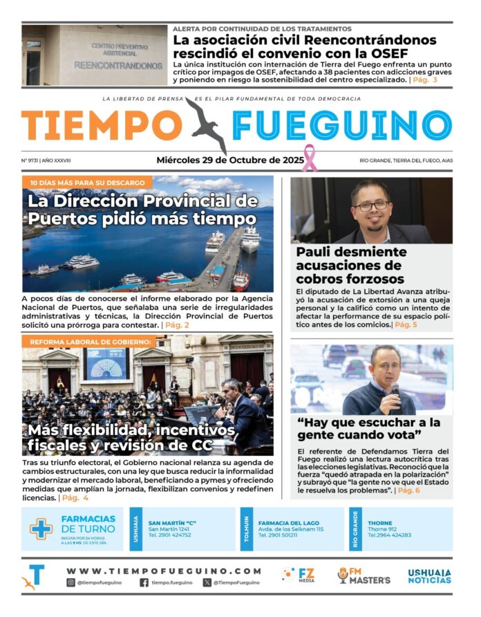 Noticias DIARIOS FUEGUINOSS DEL 29/10/2025. octubre 29, 2025 Continue Reading Previous PUERTO ALMANZA CELEBRA SU 38° ANIVERSARIO REAFIRMANDO SU IDENTIDAD Y DESARROLLONext DIARIOS NACIONALES DEL 29/10/2025.