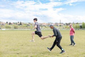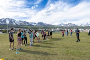 La capacitación continuó por la tarde en la cancha de rugby, donde más de 15 alumnos participaron de las prácticas específicas.
