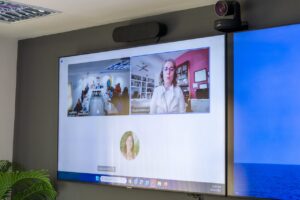 En la apertura del acto protocolar que tuvo lugar en la sala de reuniones de la empresa, la Gerente de Asuntos Públicos de TotalEnergies, Claudia Borbolla, mediante videollamada brindó un mensaje de bienvenida a las autoridades en el marco de la destacada colaboración de la firma para el desarrollo deportivo en la provincia.