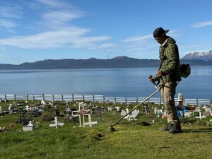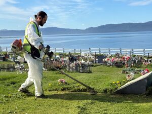 En esta oportunidad “se realizó el corte de pasto y puesta en valor del cementerio Parque del Mar”, detalló, y también “se llevó adelante la limpieza del sector de la costa entre la rotonda del aeropuerto y el hotel Tolkeyén”.