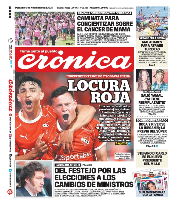 Noticias DIARIOS NACIONALES DEL 02/11/2025. noviembre 2, 2025 Continue Reading Previous EN LA ÚLTIMA REUNIÓN DE LA CAAE LA PROVINCIA BRINDÓ FUERTE APOYO AL SECTOR INDUSTRIAL QUE ATRAVIESA CRÍTICA SITUACIÓNNext RIO GRANDE : EL MUNICIPIO AVANZA CON EL PLAN DE EMBELLECIMIENTO URBANO EN TODA LA CIUDAD