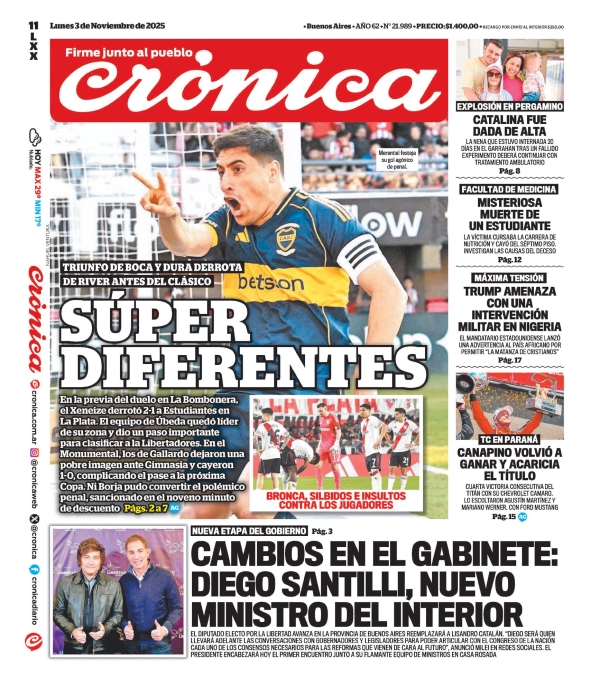 Noticias DIARIOS NACIONALES DEL 03/11/2025. noviembre 3, 2025 Continue Reading Previous DIARIOS FUEGUINOS DEL 03/11/2025.Next RIO GRANDE : EL MUNICIPIO LANZA LA CAMPAÑA DE PREVENCIÓN DE CÁNCER DE PRÓSTATA 2025