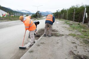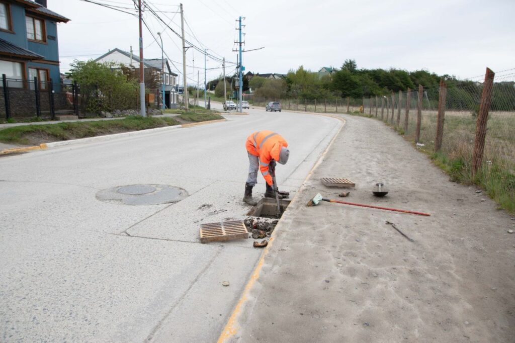 Trabajadores y trabajadoras de la Municipalidad de Ushuaia continúan con las tareas de limpieza de alcantarillas luego del fuerte temporal de lluvia que afectó a la ciudad entre el domingo y el lunes pasado.