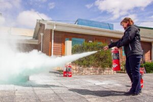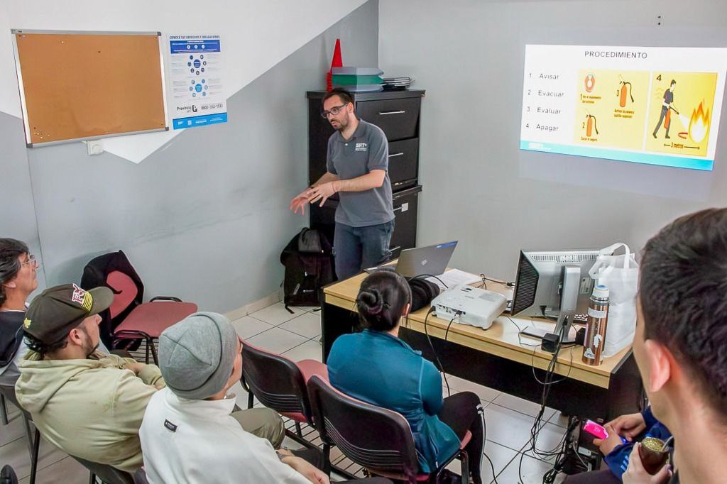 Durante las instancias de formación, los equipos municipales abordan temas vinculados al uso y práctica de extintores, con la identificación de tipos de fuego y el procedimiento adecuado ante un principio de incendio. Además, se trabajan contenidos relacionados con los riesgos generales en el puesto de trabajo, tales como incendios, atrapamientos, cortes, caídas, riesgo eléctrico, exposición a radiaciones, quemaduras y enfermedades laborales. También se profundiza en la organización y respuesta ante situaciones críticas, a través del desarrollo de planes de emergencia, simulacros y la definición de roles y puntos de encuentro.