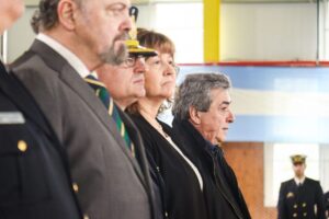 Estuvieron presentes, entre otras autoridades, la vicegobernadora Mónica Urquiza e integrantes del Poder Judicial, de la Legislatura, del Concejo Deliberante, de las fuerzas armadas y de seguridad, y miembros del Centro de Excombatientes de Malvinas en Ushuaia.