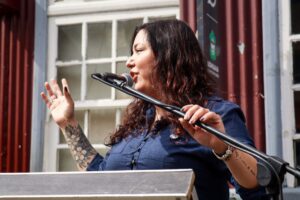 “Hoy celebramos este nuevo cumpleaños en la sede histórica de la Biblioteca Popular Sarmiento, recordando también que al final de esta calle San Martín hay un edificio pensando y hecho específicamente para esta biblioteca, parte de una política pública de un Estado presente. Hoy nos corresponde a todos y todas cuidarla y habitarla” concluyó la secretaria de Cultura y Educación.