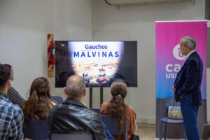 El cierre estuvo a cargo del escritor y ambientalista Marcelo Beccaceci, quien presentó su libro “Gauchos de Malvinas”. Allí relata la presencia, durante más de seis décadas del siglo XIX, de gauchos rioplatenses dedicados a la ganadería en las Islas Malvinas. Su investigación rescata ilustraciones y acuarelas realizadas en el lugar hace 150 años, que documentan la vida cotidiana de aquellos criollos.
