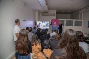 A las 21 horas tuvo lugar la charla y muestra fotográfica “Antártida – Los colores del desierto frío”, donde Marcelo Gurruchaga presentó ante un numeroso público joven su experiencia en el continente blanco, resaltando el vínculo entre luz, silencio y paisaje en la Antártida.