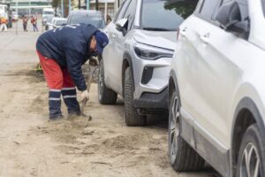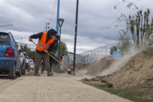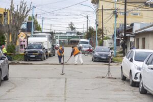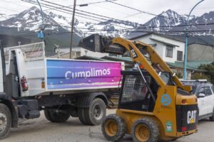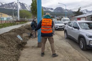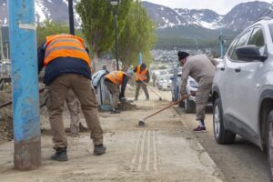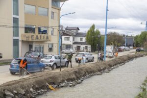 El secretario de Medio Ambiente, David Ferreyra, sostuvo que “estuvimos trabajando en veredas y calles de distintos barrios que sufrieron anegamientos por la salida de cauce del arroyo Buena Esperanza”, entre ellas “Aldo Motter y el camino al Glaciar Martial, Fuegia Basket, Damiana Fique y arterias aledañas”.