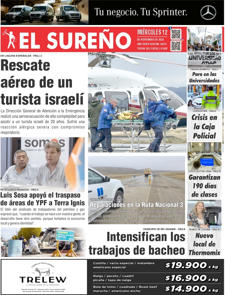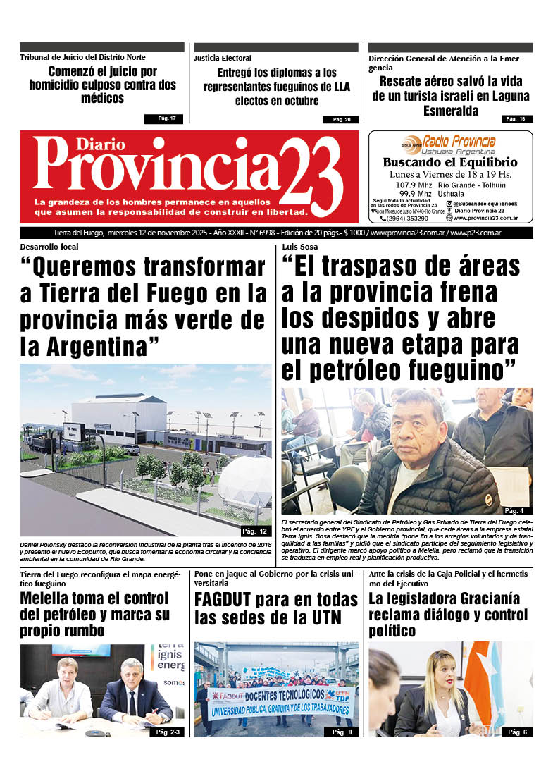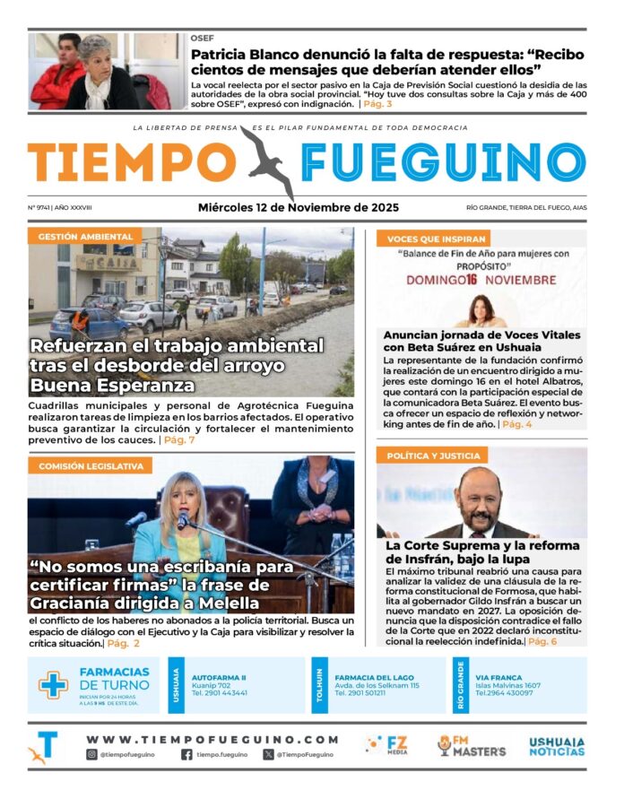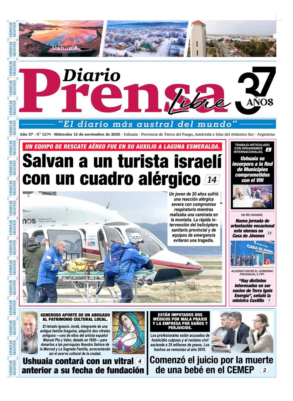Noticias DIARIOS FUEGUINOS DEL 12/11/2025. noviembre 12, 2025 Continue Reading Previous RESCATE AÉREO SALVÓ LA VIDA DE UN TURISTA ISRAELÍ EN LAGUNA ESMERALDANext DIARIOS NACIONALES DEL 12/11/2025.
