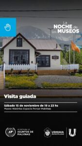 La Municipalidad de Ushuaia, a través de la Secretaría de Asuntos de Malvinas, invita a los vecinos y vecinas de la ciudad a participar de una nueva edición de “La Noche de los Museos”, que se llevará a cabo el sábado 15 de noviembre de 19 a 23 horas en el Museo Histórico Espacio Pensar Malvinas.