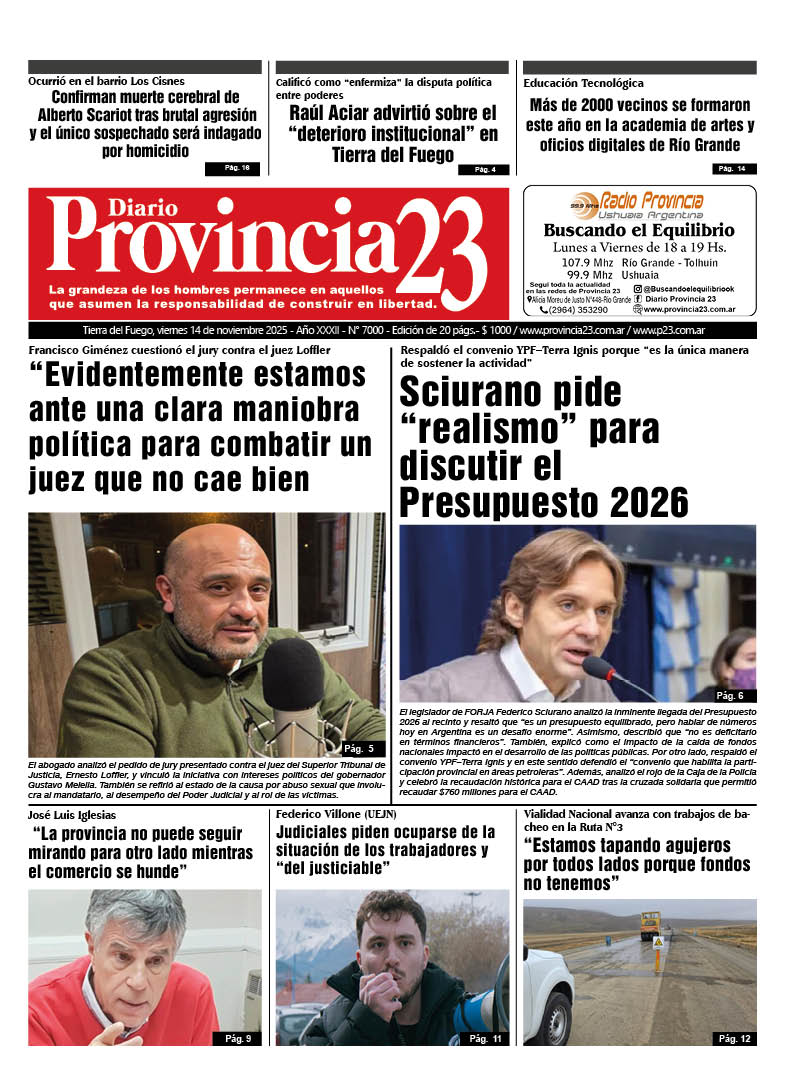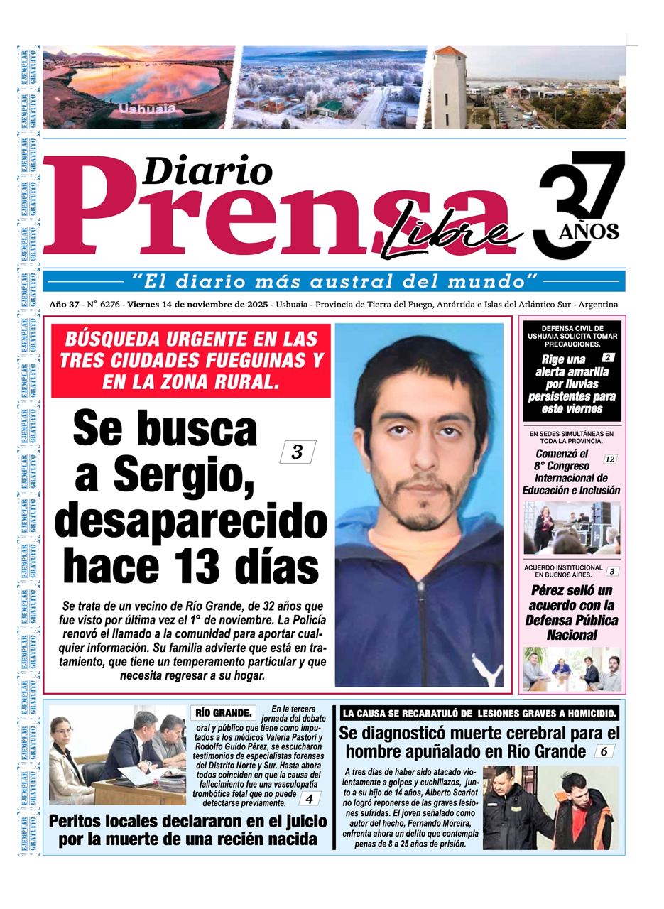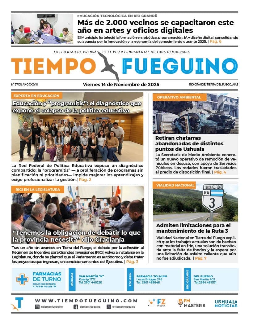 Noticias DIAREIOS FUEGUINOS DEL 14/11/2025. noviembre 14, 2025 Continue Reading Previous INICIÓ EL 8° CONGRESO INTERNACIONAL DE EDUCACIÓN E INCLUSIÓN CON ENFOQUE EN SALUD MENTAL Y DIVERSIDAD EN LAS AULASNext DIARIOS NACIONALES DEL 14/11/2025.