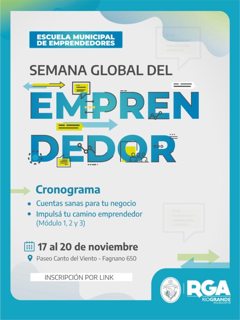 El Municipio de Río Grande, a través de la Secretaría de Desarrollo Productivo, se suma por primera vez a la Semana Global del Emprendedor, una celebración internacional que reúne a millones de personas en más de 200 países con el objetivo de inspirar, conectar y potenciar a quienes transforman ideas en proyectos productivos.