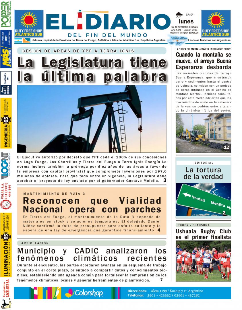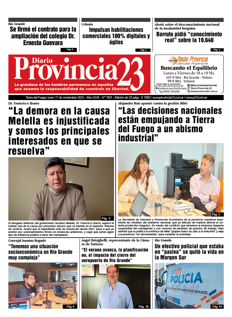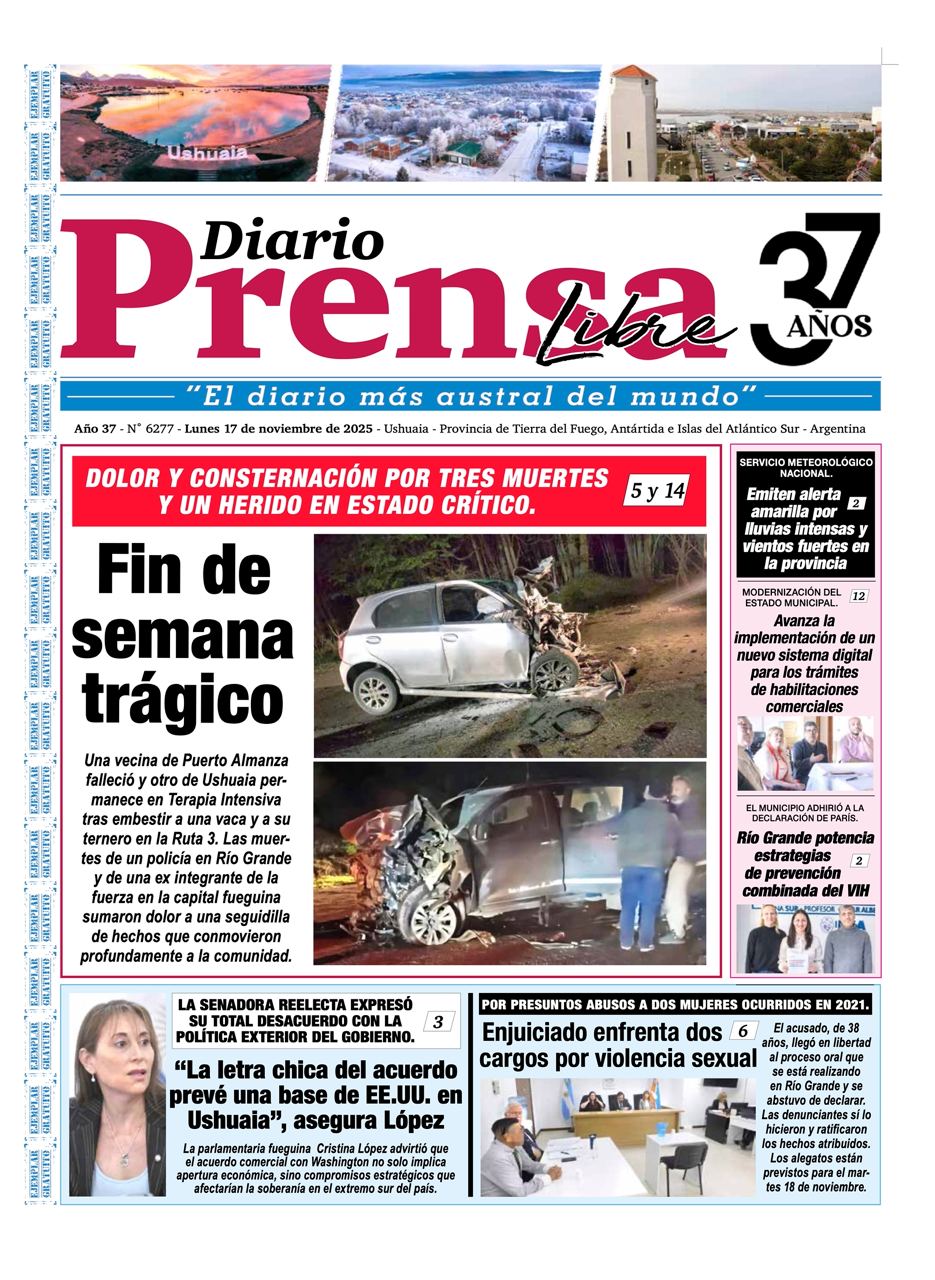 Noticias DIARIOS FUEGUINOS DEL 17/11/2025. noviembre 17, 2025 Continue Reading Previous RIO GRANDE :CONDOLENCIASNext DIARIOS NACIONALES DEL 17/11/2025.
