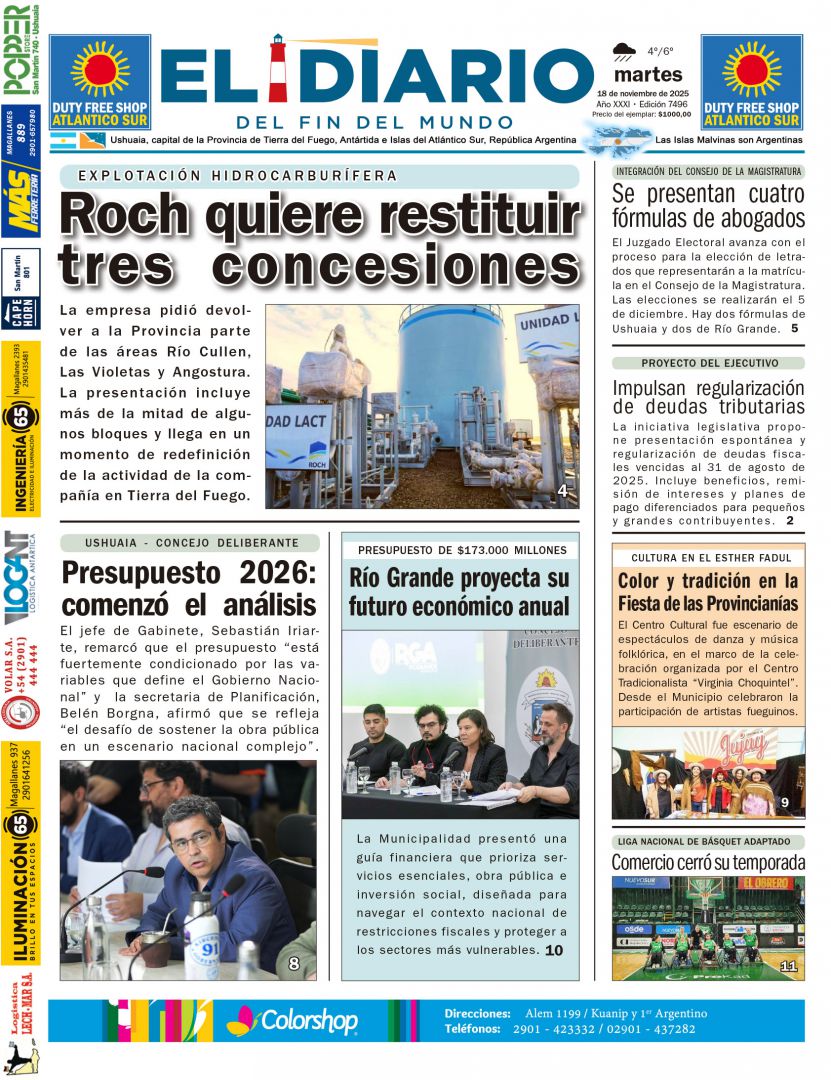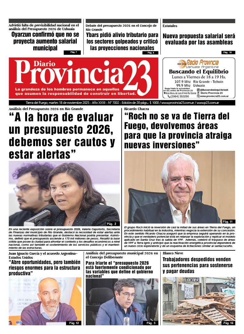 Noticias DIARIOS FUEGUINOS DEL 18/11/2025. noviembre 18, 2025 Continue Reading Previous RIO GRANDE : “EL PRESUPUESTO MUNICIPAL 2026 DEFIENDE DERECHOS Y GARANTIZA SERVICIOS ESENCIALES EN RÍO GRANDE”Next DIARIOS NACIONALES DEL 18/11/2025.