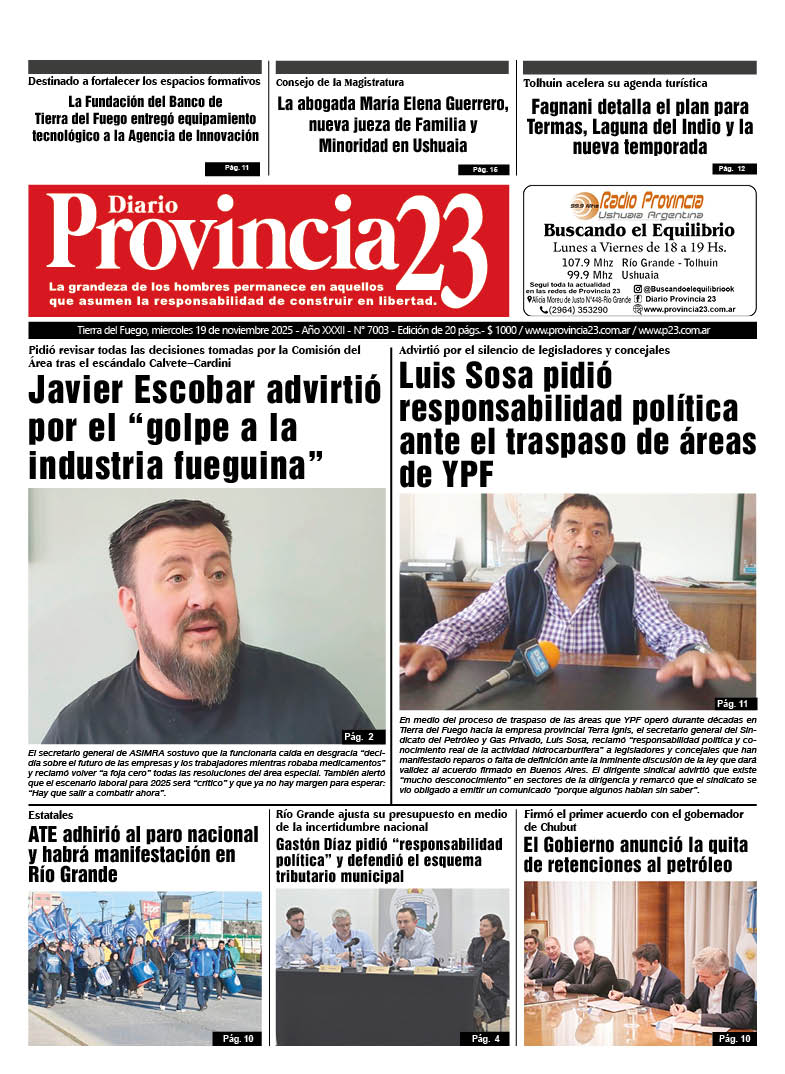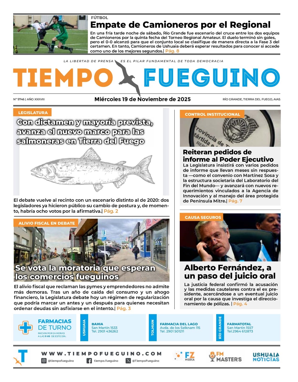 Noticias DIARIOS FUEGUINOS DEL 19/11/2025. noviembre 19, 2025 Continue Reading Previous UN RECONOCIMIENTO A LA CONSTRUCCIÓN COLECTIVA: LA REVISTA “AUKEN”, UN PROYECTO QUE HACE COMUNIDAD ✨🫱🏻🫲🏼Next DIARIOS NACIONALES DEL 19/11/2025.