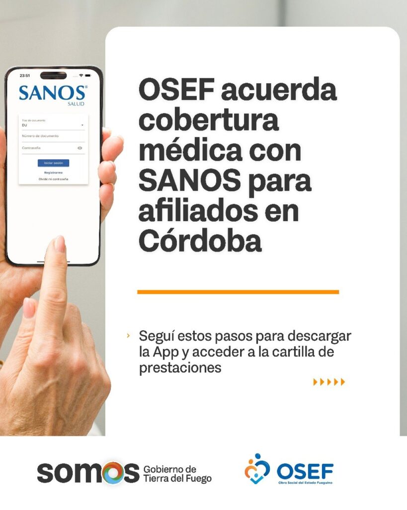 La Obra Social del Estado Fueguino (OSEF) informa que ha establecido un acuerdo con SANOS Salud para brindar cobertura médica a sus afiliados que se encuentren en la provincia de Córdoba. Este convenio tiene como objetivo garantizar el acceso a servicios de salud de calidad, respondiendo a las necesidades de los afiliados en un contexto de complejidad creciente.