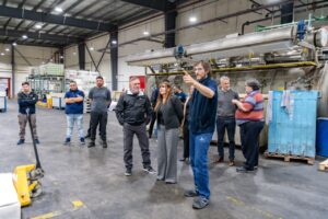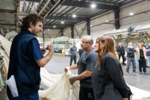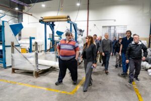 Durante la visita, se pudo observar la tecnología de punta con la que cuenta la fábrica y se destacó la notable capacidad de resiliencia de Australtex, que logró reanudar sus operaciones en 2022 tras superar un devastador incendio en 2021. Un dato que refleja el contexto actual es que, a pesar de operar con un 50% de su capacidad ociosa, la compañía mantiene un firme compromiso con su personal y un alto estándar tecnológico.