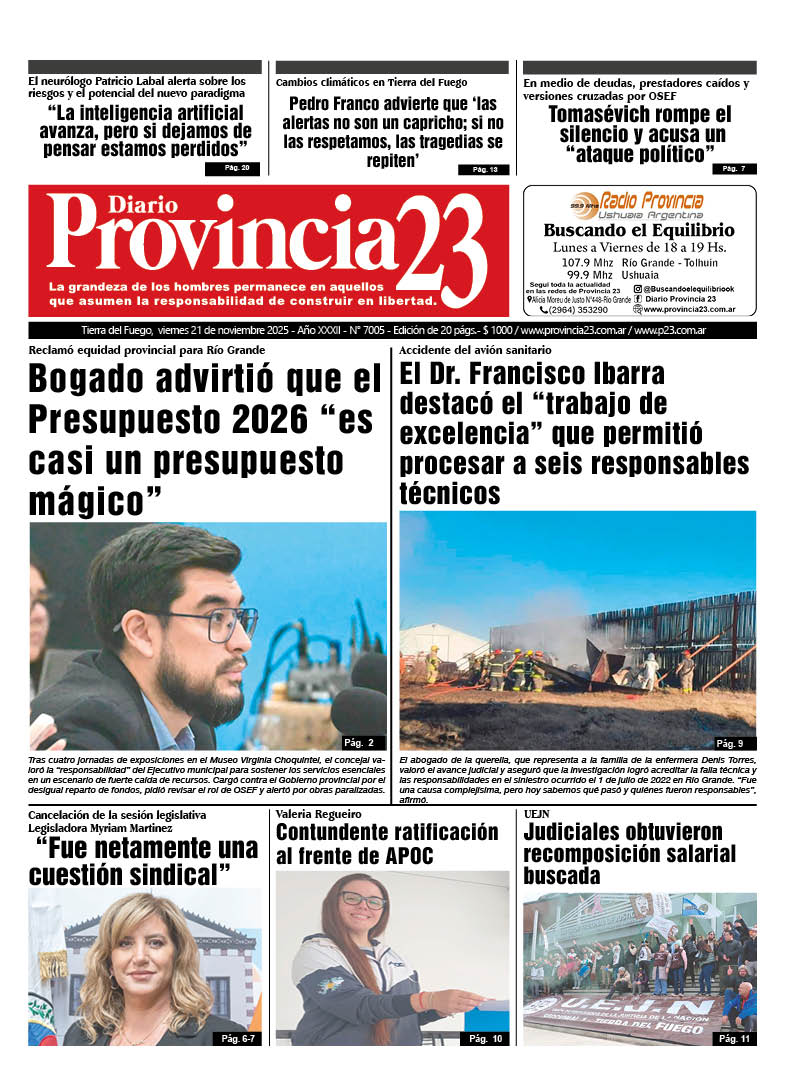 Noticias DIARIOS FUEGUINOS DEL 21/11/2025. noviembre 21, 2025 Continue Reading Previous GRAN DEBUT DE DEPORTISTAS FUEGUINOS EN LA CUARTA EDICIÓN DE LOS JUEGOS BINACIONALES DE LA PARA ARAUCANÍANext DIARIOS NACIONALES DEL 21/10/2025.