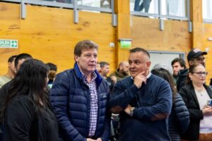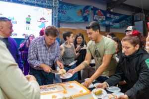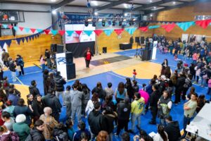 El Gobernador de Tierra del Fuego AIAS, Gustavo Melella, acompañado de funcionarios y funcionarias del Ejecutivo Provincial, participó de los festejos por el 34 aniversario del Barrio Chacra IV de Río Grande que se desarrollaron en el flamante gimnasio del Club Garibaldi.