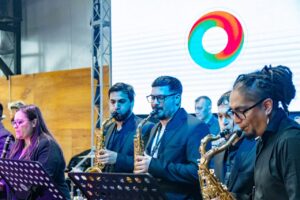 Al momento de cortar la torta los y las presentes cantaron el feliz cumpleaños acompañados de la Banda Municipal que ofreció luego parte de su repertorio.