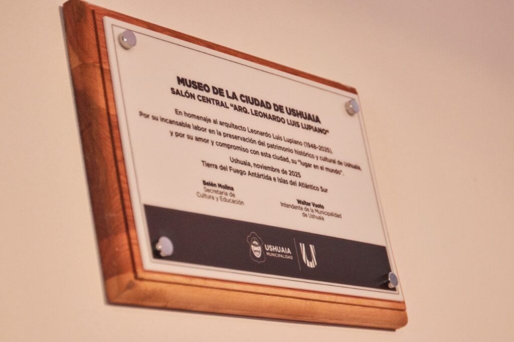 La Municipalidad de Ushuaia, a través de la Secretaría de Cultura y Educación, llevó adelante en el Museo de la Ciudad – Casa Pena, el descubrimiento de la placa en homenaje al Arquitecto Leonardo Luis Lupiano, quién ahora dará su nombre al salón principal de este espacio.
