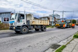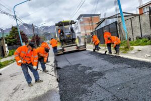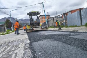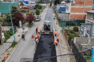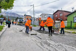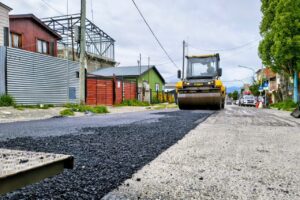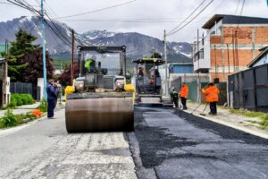 La Municipalidad de Ushuaia llevó adelante este sábado una intensa jornada del plan de mejoramiento vial, concretando tareas de pavimentación en la calle Primer Argentino, con maquinaria, personal y producción municipal.